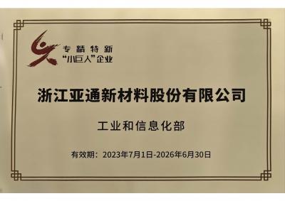 亞通新材獲評國家級重點“小巨人”企業