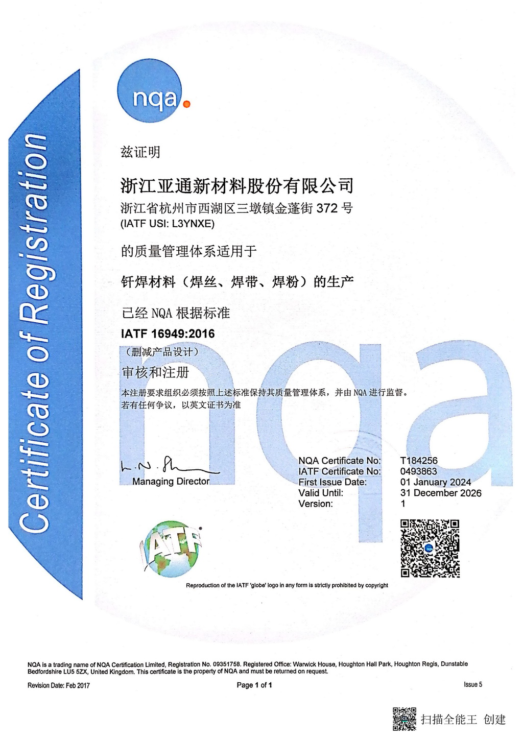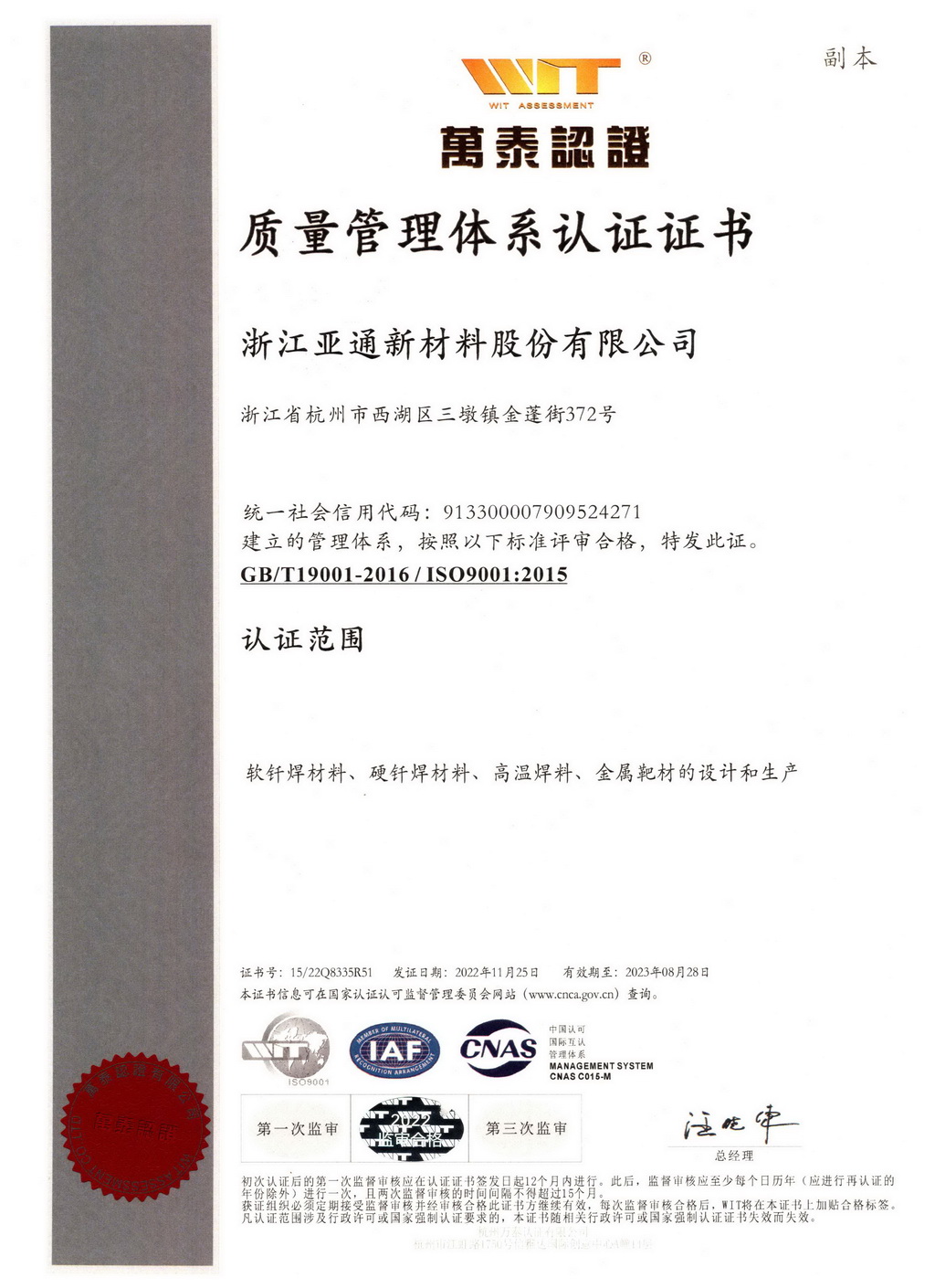 浙江亞通新材料股份有限公司是世界500強企業杭鋼集團投資設立的高新技術企業,位于杭州市西湖區紫金港科技城,專業從事高中低溫全系列釬焊材料和金屬粉體的研發生產和銷售,是國內焊接材料行業的核心企業之一,多項國家標準的主要起草單位。公司在中國電子材料行業協會、國家標準化技術委員會、中國焊接協會等專業機構擔任領導職務,在行業內具有廣泛影響力。